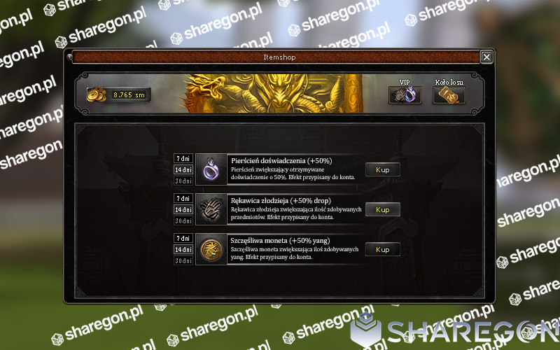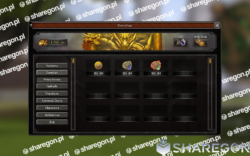 Proste okno itemshopu stworzone na podstawie (oraz przy użyciu elementów) standardowego gui Metin2.