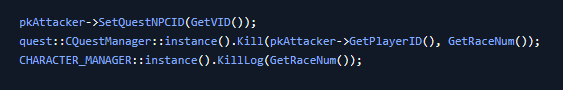 quest::CQuestManager::instance().Kill(pkAttacker->GetPlayerID(), GetRaceNum());