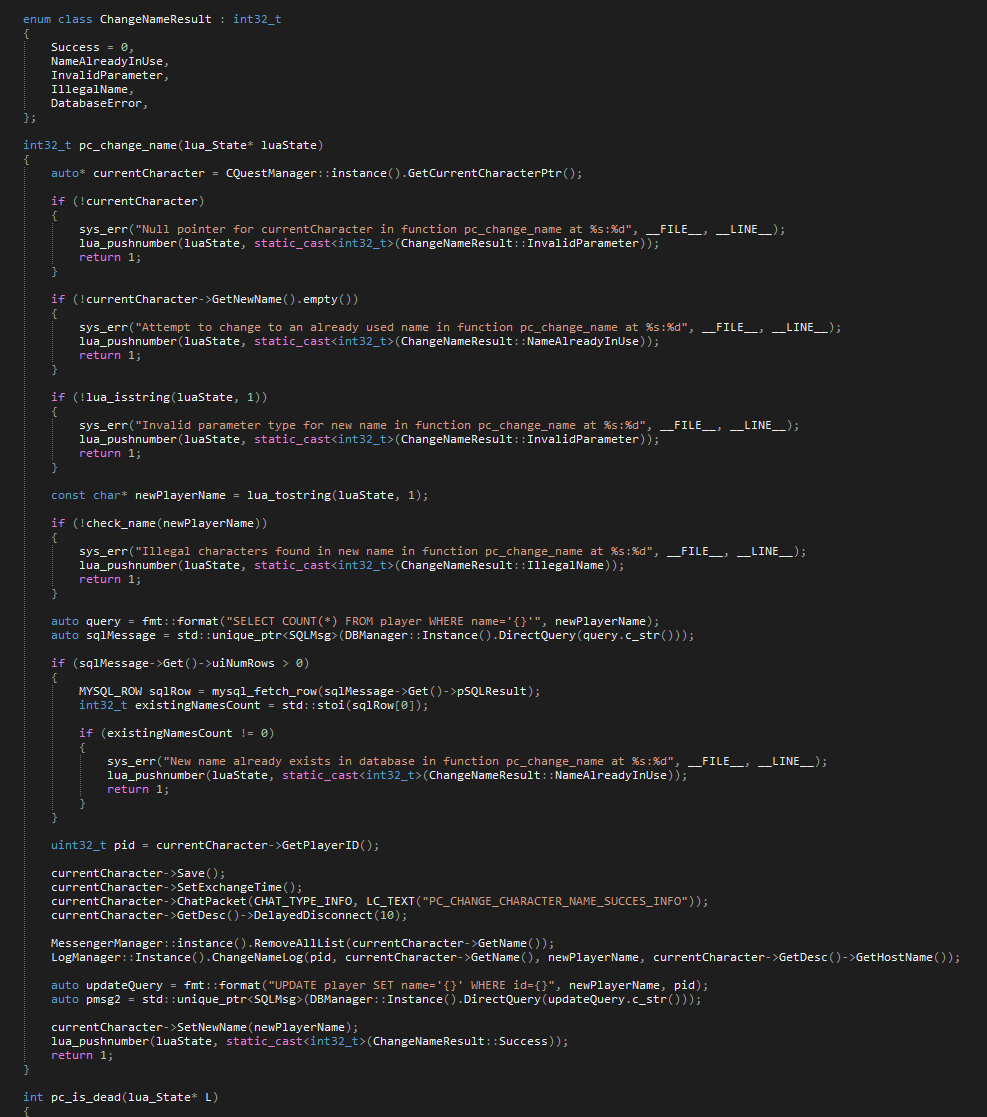 Naprawa krytycznego błędu - kopiowanie przedmiotów poprzez funkcję do zmiany nazwy gracza (pc_change_name)